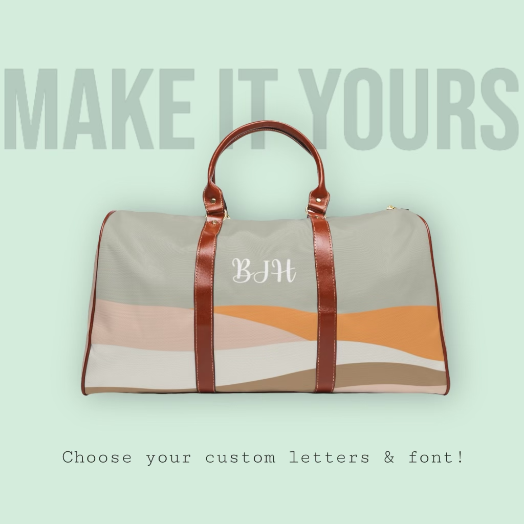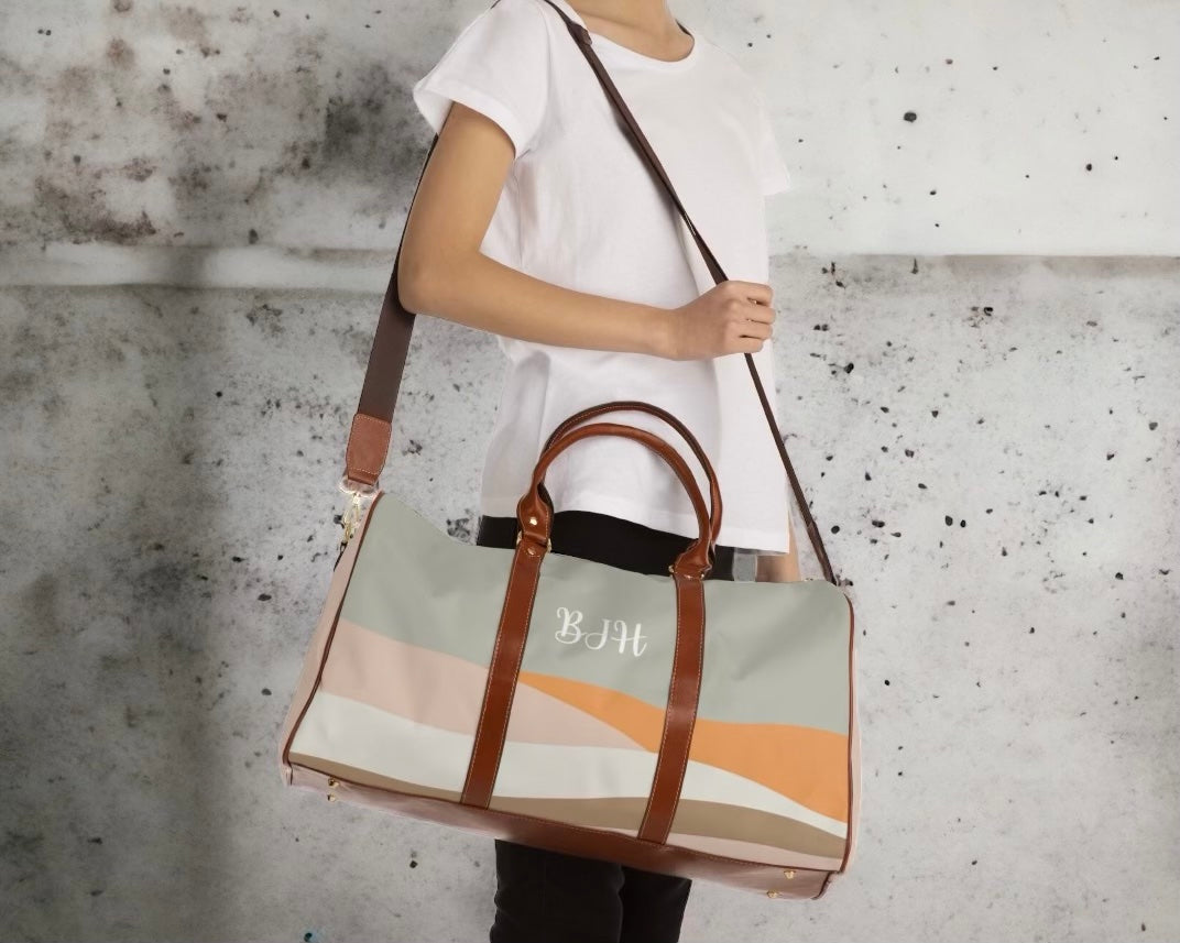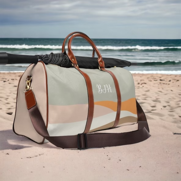 This personalized travel bag is all about style and is the perfect gift! Made with high-grade waterproof fabric, it's a highly durable means of transferring your essentials wherever you go. With multiple compartments, a resilient carrying handle, and an adjustable shoulder strap, it's the perfect companion for all your adventures.